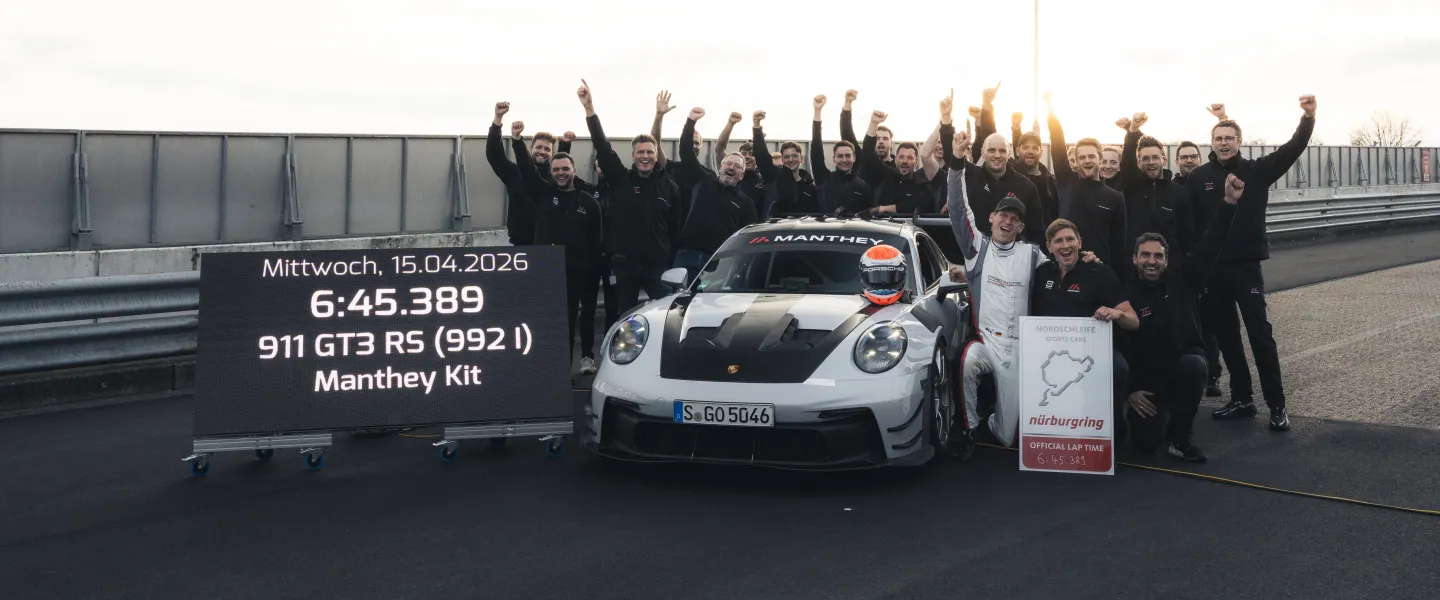 Nicolas Raeder, Managing Director of the Manthey Racing GmbH: „The Nordschleife is considered the benchmark for high-performance road cars and is therefore an integral part of our development projects. However, to set an official lap time on the Nordschleife, a special slot is required during which lap time attempts may be carried out and certified by a notary. In previous slots, the Eifel weather got in the way of our plans. That’s why we’re very pleased that we were finally able to demonstrate the potential of the 911 GT3 RS with Manthey kit. This shows that the hard work of the past few years has paid off. Many thanks to the entire team, Jörg, and Porsche for the great collaboration.”