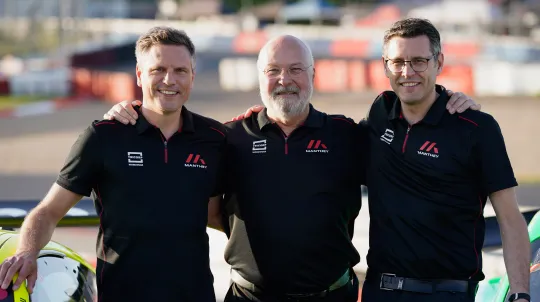 „Seit wir 2013 die Geschäftsführung übernommen haben, ist die Zeit unglaublich schnell vergangen. Wenn wir heute zurückblicken, macht es uns stolz zu sehen, was wir mit unserem großartigen Team erreicht haben. Angefangen haben wir als kleines Team in Meuspath und heute sind wir weltweit im GT‑Sport, aber auch im Bereich Road Cars, Race Cars und Experience bekannt. All das wäre ohne ein starkes Team nicht möglich. Mittlerweile sind wir über 350 Mitarbeitende – manchmal können wir das selbst kaum glauben. Jede und jeder Einzelne trägt dazu bei, dass wir uns als Unternehmen so entwickeln konnten. Dazu zählen auch unsere Geschäftspartner und Freunde, mit denen wir über die Jahre diesen Weg gegangen sind. Sie alle sind ein wesentlicher Teil unseres Erfolgs. Das Schönste ist: Es kommen immer wieder neue Ideen dazu, die wir gemeinsam versuchen umzusetzen und mit denen wir uns jeden Tag ein bisschen neu erfinden. Dieses Miteinander, dieses ständige Weiterentwickeln – das ist für mich einer der größten Antriebe und die Motivation, die Manthey ausmacht“, erklärt Martin Raeder, Geschäftsführer der Manthey Racing GmbH.