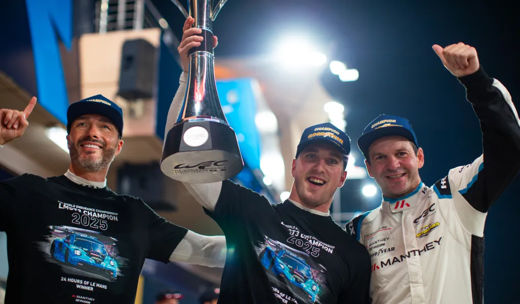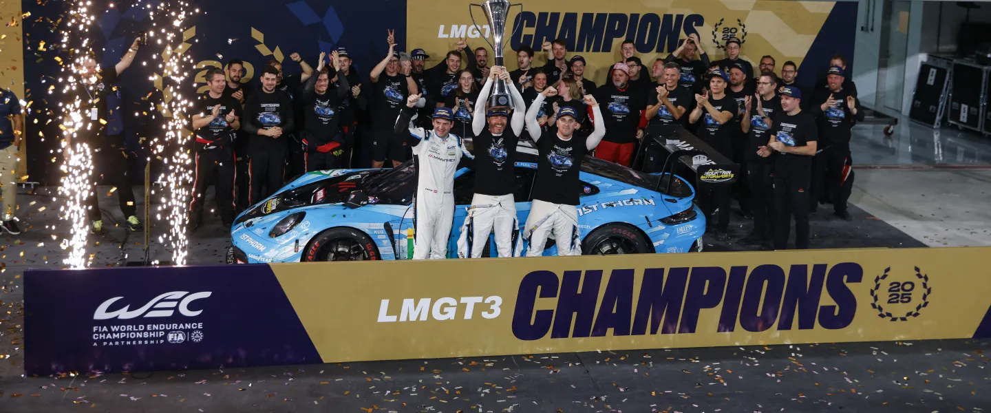 Bahrain. Manthey verteidigt mit Ryan Hardwick (USA), Riccardo Pera (Italien) und Richard Lietz (Österreich) im Manthey 1st Phorm Porsche erfolgreich die FIA Endurance Trophy für LMGT3 Teams und Fahrer. Das Trio fuhr nach einem schwierigen Qualifying im Verlauf des Acht-Stunden-Rennens um 13 Positionen auf Rang vier vor und konnte damit die Meisterschaft mit 14 Punkten Vorsprung vor dem rennfünften Ferrari von Vista AF Corse (#21) für sich entscheiden. Rahel Frey (Schweiz), Michelle Gatting (Dänemark) und Célia Martin (Frankreich) erlebten am Steuer des Iron Dames Porsche 911 GT3 R erneut ein widriges Rennen: Eine Kollision kurz nach der ersten Stunde auf dem 5,412-km langen Bahrain International Circuit sowie die strategisch schlecht gelegene Virtual-Safety-Car (VSC) Phase kurz vor dem Rennende sahen sie letztendlich auf Rang zwölf. Mit diesem Ergebnis feiert Manthey zum zweiten Mal in Folge alle in der LMGT3-Klasse möglichen Titel in der FIA Langstrecken-Weltmeisterschaft – einschließlich des prestigeträchtigen Sieges bei den 24 Stunden von Le Mans.