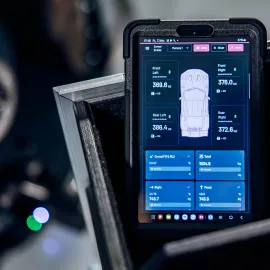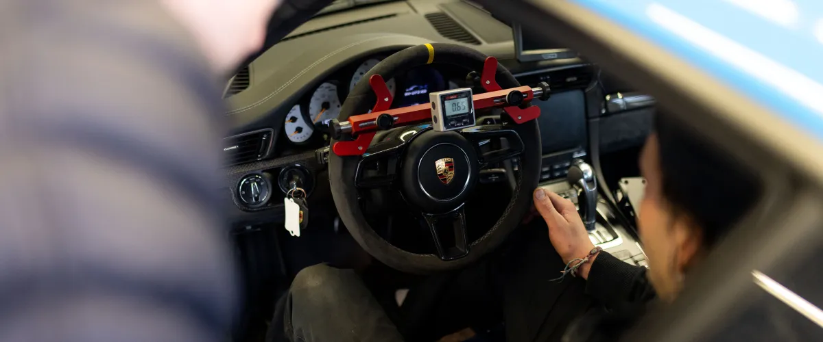 Exakte Fahrwerksvermessung inklusive Radlastabstimmung. Für ein Fahrerlebnis auf Porsche Niveau.