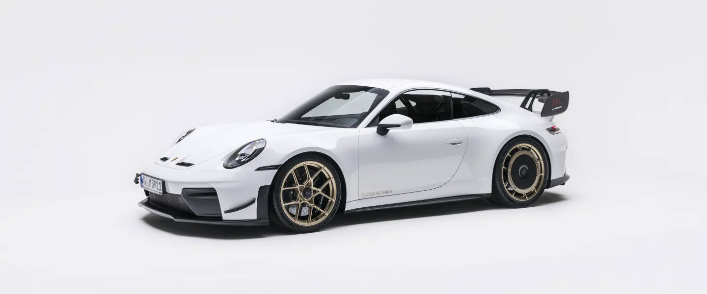 Based on many years of motorsport experience and developed in close collaboration with Porsche, an impressive kit has been created over more than a year of development. It makes the 911 GT3 (Type 992.2) even more capable as an unshakable boundary-pusher between racetrack and road. Through precisely tuned aerodynamic, suspension, and high-performance braking components, it has been possible to surpass the limits previously considered unachievable. Detailed analysis revealed optimization potential, which Manthey and Porsche experts used to develop highly functional components and design concepts. These were thoroughly refined in the wind tunnel as well as over countless test and track kilometers. As the result of uncompromising development work — for higher cornering speeds and maximized vehicle stability — the 911 GT3 (Type 992.2) equipped with the Manthey Kit achieves a total downforce of 540 kg at 285 km/h.