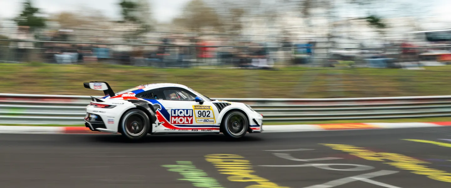 Nürburg. After the first race of the Nürburgring Langstrecken-Serie (NLS) – and thus the season opener of the Porsche Endurance Trophy Nürburgring (PETN) – was cancelled due to bad weather, the PETN got off to a belated start in its fifth season. A total of 29 cars competed in the first race of the season for the Porsche one-make series as part of the NLS, including twelve Porsche 911 GT3 Cup in the Cup 2 class and 17 Porsche 718 Cayman GT4 CS in the Cup 3 class. After an eventful race, the junior trio from Team LIQUI MOLY by BLACK FALCON (#902) – Ryan Harrison, Raphael Rennhofer and Leon Wassertheurer – prevailed to take the class victory. In the Cup 3 class, the new driver duo from Smyrlis Racing (#953), Alexander Fielenbach and Oskar Sandberg, took the win. In spring-like conditions, the new PETN Village opened its doors, providing a welcoming spot in the paddock for teams, drivers and spectators.